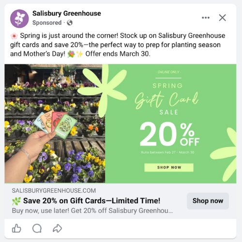 This post will walk through how to tighten your approach so your ads feel less like a risk and more like a system. You will also see how Salisbury Greenhouse turned a simple spring gift card campaign into measurable results.